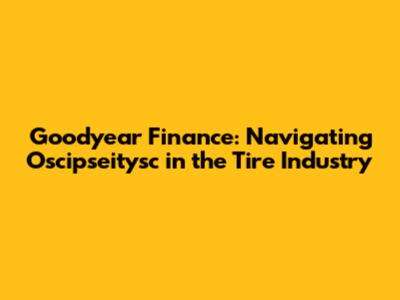 Goodyear Finance: Navigating Oscipseitysc In Tire Industry