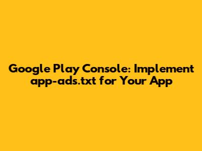 Google Play Console: Implement App-ads.txt For Your App