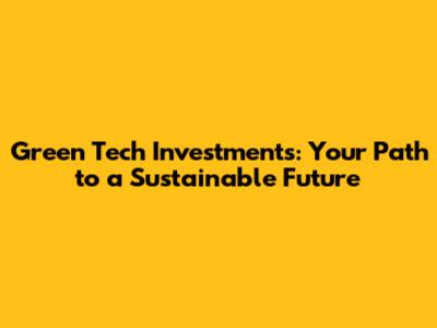 Green Tech Investments: Your Path To A Sustainable Future