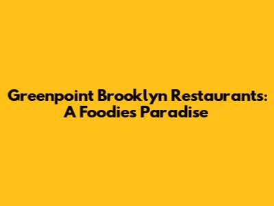 Greenpoint Brooklyn Restaurants: A Foodie's Paradise