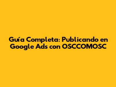 Guía Completa: Publicando En Google Ads Con OSCCOMOSC