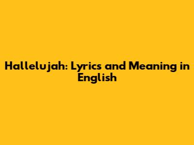Hallelujah: Lyrics And Meaning In English
