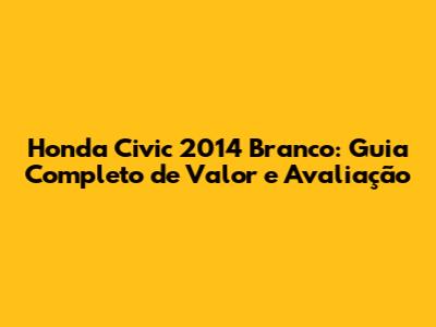 Honda Civic 2014 Branco: Guia Completo De Valor E Avaliação