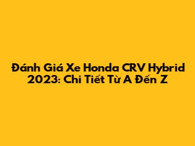 Honda CRV Hybrid 2023: Review, Giá Và Thông Số Kỹ Thuật
