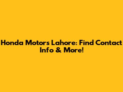 Honda Motors Lahore: Find Contact Info & More!