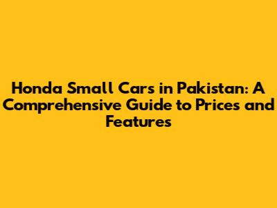 Understanding the Honda Small Car Market in Pakistan