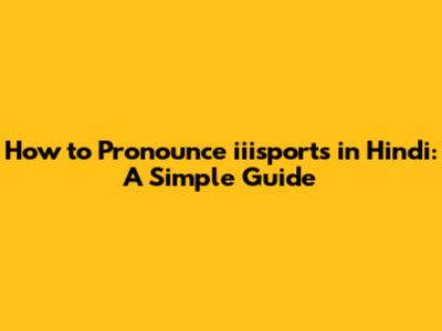 How To Pronounce Iiisports In Hindi: A Simple Guide