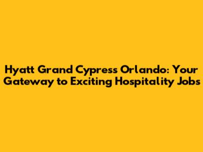 Hey everyone! Are you looking for amazing job opportunities in the heart of Orlando? Well, look no further! The Hyatt Grand Cypress is calling, and they're looking for awesome people just like you to join their team. This place isn't just a hotel; it's a destination, a resort, a whole vibe. And the best part? They're always on the lookout for talented individuals to help make the magic happen. So, if you're ready to dive into the world of hospitality and create unforgettable experiences for guests, then buckle up! Let's explore everything you need to know about Hyatt Grand Cypress Orlando jobs and how to land your dream role.