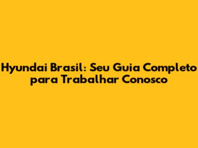 Olá, pessoal! Se você está buscando oportunidades de carreira e sonha em fazer parte de uma empresa renomada no setor automotivo, então você veio ao lugar certo. Neste artigo, vamos mergulhar no universo da Hyundai Brasil, explorando as diversas chances de trabalho que eles oferecem e como você pode se candidatar. Prepare-se para descobrir tudo sobre o "trabalhe conosco" da Hyundai, desde vagas abertas até dicas para se destacar no processo seletivo.
