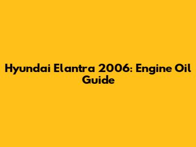 Hyundai Elantra 2006: Engine Oil Guide
