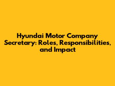Hyundai Motor Company Secretary: Roles, Responsibilities, And Impact