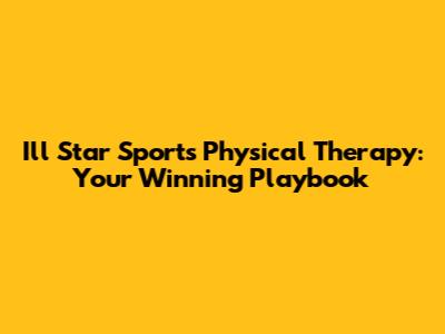 I'll Star Sports Physical Therapy: Get Back In The Game!