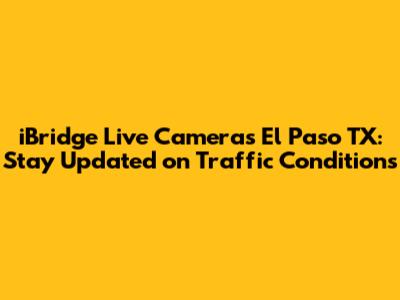 Hey guys! Are you looking to stay ahead of the curve when it comes to El Paso traffic? Well, you're in the right place! This article is all about iBridge live cameras in El Paso, TX, and how they can help you navigate the city's roadways like a pro. We'll dive deep into what iBridge is, where you can find these cameras, and how to use them to make your daily commute or travel plans smoother than ever. So, buckle up and let's get started!