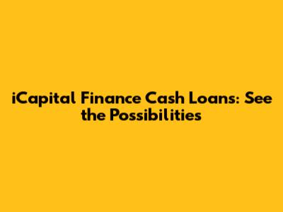 ICapital Finance Cash Loans: See The Possibilities