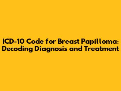 • What is the ICD-10 code for breast papilloma? The primary code used is N60.2 (Benign mammary dysplasia). This code helps doctors track and classify the condition accurately.