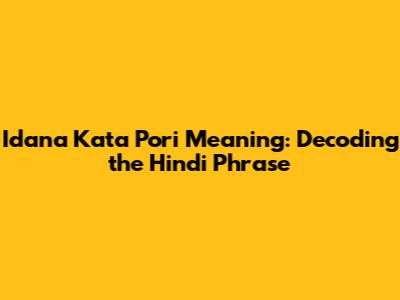 Idana Kata Pori Meaning: Decoding The Hindi Phrase