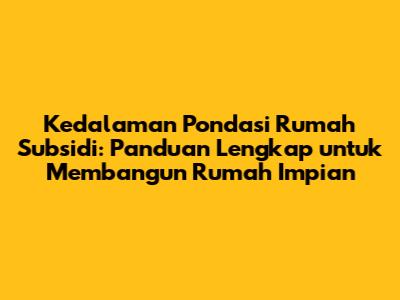 Memiliki rumah adalah impian bagi banyak orang, dan program rumah subsidi pemerintah hadir untuk mewujudkan impian tersebut. Namun, membangun rumah, apalagi rumah subsidi, memerlukan perencanaan yang matang, terutama dalam hal kedalaman pondasi. Kedalaman pondasi yang tepat akan menjamin kekuatan dan keamanan bangunan rumah Anda dalam jangka panjang. Artikel ini akan membahas secara mendalam mengenai kedalaman pondasi rumah subsidi, faktor-faktor yang mempengaruhinya, jenis-jenis pondasi yang umum digunakan, serta tips dan trik untuk memastikan pondasi rumah Anda kuat dan tahan lama.