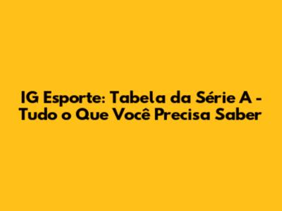 Onde Encontrar a Tabela da Série A no IG Esporte?