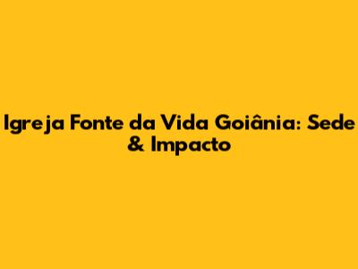 Igreja Fonte Da Vida Goiânia: Sede & Impacto