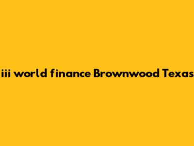 Iii World Finance Brownwood Texas: Your Guide