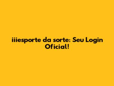 Iiiesporte Da Sorte: Seu Login Oficial!