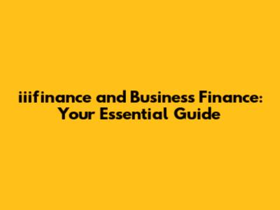 Iiifinance And Business Finance: Your Essential Guide