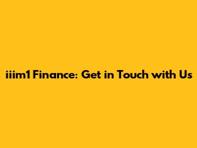 Iiim1 Finance: Get In Touch With Us