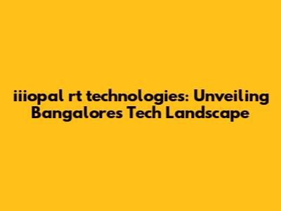 Iiiopal Rt Technologies: Your Guide To Bangalore's Tech Scene