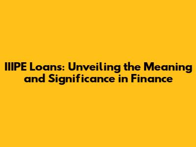 IIIPE Loans: Understanding The Meaning And Impact In Finance