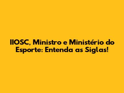 IIOSC, Ministro E Ministério Do Esporte: Entenda As Siglas!