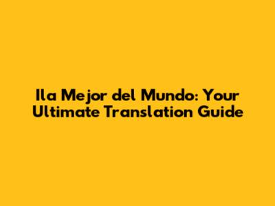 Ila Mejor Del Mundo: Your Ultimate Translation Guide