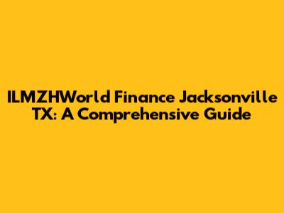 Hey there, finance enthusiasts! Are you searching for financial solutions in Jacksonville, TX? You've landed in the right spot! Today, we're diving deep into ILMZHWorld Finance and what they have to offer the good people of Jacksonville. This article is your all-in-one guide, breaking down everything from their services to why they might be a great fit for your financial needs. So, buckle up, grab your favorite beverage, and let's explore the world of ILMZHWorld Finance in Jacksonville, TX. We're going to cover everything from the basic services they offer to some insider tips on how to make the most of what they have to offer. Ready? Let's go!