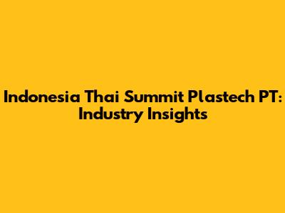 Let's dive into Indonesia Thai Summit Plastech PT, a key player in the ever-evolving world of manufacturing and technology. Understanding their role, impact, and contributions can give us a clearer picture of industry trends and innovations. So, let's get started, guys!