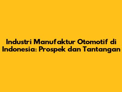 Industri Manufaktur Otomotif Di Indonesia: Prospek Dan Tantangan