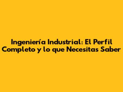 Ingeniería Industrial: El Perfil Completo Y Lo Que Necesitas Saber