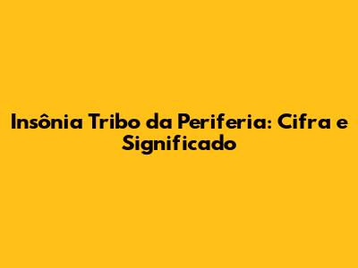 Insônia Tribo Da Periferia: Cifra E Significado