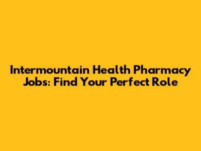 Intermountain Health Pharmacy Jobs: Find Your Perfect Role