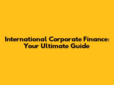 International Corporate Finance: Your Ultimate Guide