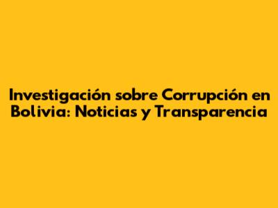 Investigación Sobre Corrupción En Bolivia: Noticias Y Transparencia