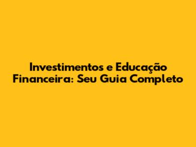 Investimentos E Educação Financeira: Seu Guia Completo