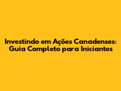Investindo Em Ações Canadenses: Guia Completo Para Iniciantes