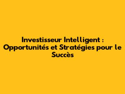 Investisseur Intelligent : Opportunités Et Stratégies