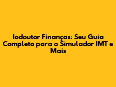 Iodoutor Finanças: Simulador IMT E Dicas Essenciais