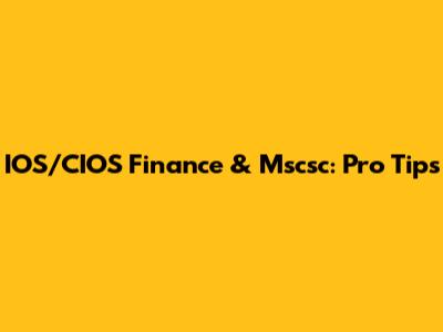 Pro Tips for IOS/CIOS Finance and Mscsc