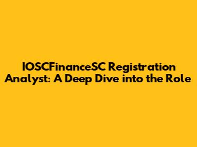 IOSCFinanceSC Registration Analyst: Role & Insights