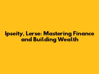 Ipseity, Lerse: Mastering Finance And Building Wealth
