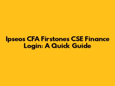 Ipseos CFA Firstones CSE Finance Login: A Quick Guide