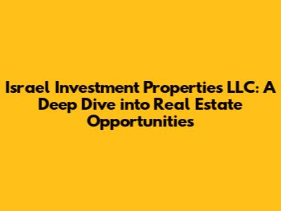 Hey there, real estate enthusiasts! Let's dive into the exciting world of Israel Investment Properties LLC. This is where we will explore what makes investing in Israeli real estate so appealing, the strategies that can help you succeed, and some key things to keep in mind. Whether you're a seasoned investor or just starting out, Israel's market has a lot to offer. So, grab a coffee, and let's get started!