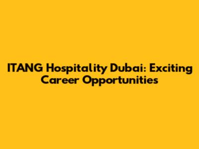ITANG Hospitality Dubai: Exciting Career Opportunities