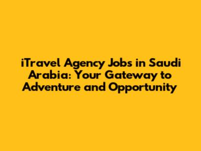 ITravel Agency Jobs In Saudi Arabia: Your Gateway